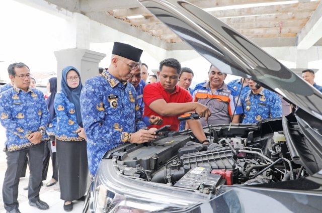 Gubernur Lampung Rahmat Mirzani Djausal mengecek pajak dan nomor rangka mesin kendaraan bermotor. (foto : ist)