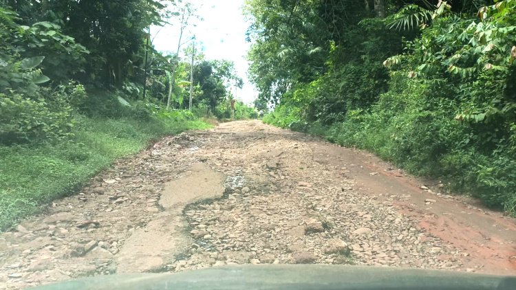 Jalan utama yang menghubungkan antar kampung ini mengalami kerusakan parah dengan panjang hampir mencapai 3 kilometer. Aspalnya mengelupas, hingga memperlihatkan batu-batu besar dan tanah yang menganga. Seringkali, jalanan ini menjadi licin, terutama setelah hujan, menyebabkan kecelakaan dan bahkan kendaraan terguling.