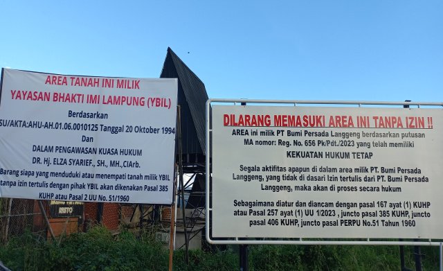 Selain plang dari PT. Bumi Persada, di lokasi ini juga ada plang dari Yayasan Bhakti IMI Lampung berdasarkan SU/AKTA: AHU-AH.01.06.0010125 tanggal 20 Oktober 1994. (W9-jm)