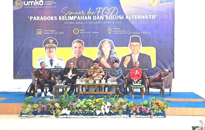 Kotabumi, Warta9.com – Fenomena anjloknya harga singkong yang cenderung merugikan petani singkong, Pimpinan Wilayah Muhammadiyah (PWM) provinsi Lampung beserta Universitas Muhammadiyah Kotabumi (UMKO) menggelar seminar dan fokus grup diskusi (FGD) terkait solusi atas fenomena fluktuasi harga singkong.