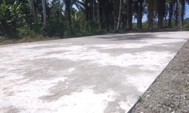 Lapangan berukuran 45/15 meter tersebut meraup anggaran sebesar Rp76 juta yang bersumber dari Dana Desa (DD) tahun 2025. Namun yang menyita perhatian, kondisi pondasi bangunan tampak sangat dangkal, terlebih lantai kini mengalami keretakan hingga tak datar.