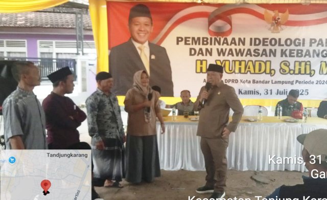 Bandarlampung, Warta9.com – Anggota Komisi III DPRD Kota Bandarlampung H. Yuhadi, SHI, MH, melaksanakan sosialisasi pembinaan Ideologi Pancasila dan Wawasan Kebangsaan (IPWK) di Kelurahan Kaliawi Kecamatan Tanjungkarang Pusat, Kamis (31/7/2025).
