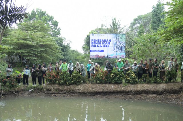 mengikuti tebar ratusan bibit ikan lele dan nila di Techno Park Gedongmeneng milik kampus UTI, Kamis (18/9/2025).