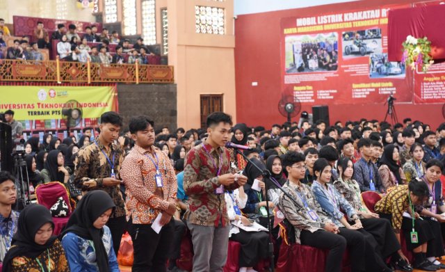 Kehadiran Staf Khusus Wakil Presiden dimanfaatkan oleh mahasiswa untuk menyampaikan pertanyaan berbagai hal terkait AI. Mahasiswa berebut bertanya, namun panitia membatasi jumlah yang akan menyampaikan pertanyaan. (W9-jm)
