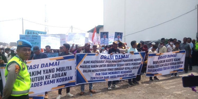 JPU menuntut Ibrahim dengan hukuman 1 tahun 3 bulan penjara. Tak terima dengan tuntutan itu, serta menganggap bahwa kadesnya tidak bersalah, ratusan warga Desa Pematang Panggang berduyun-duyun mendatangi kantor PN Kayuagung, Senin (8/9/2025), untuk menggelar aksi damai membela sang kades.