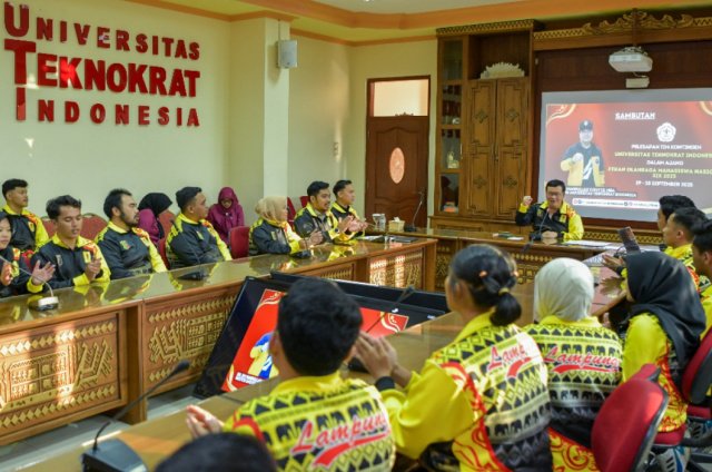 Bandarlampung, Warta9.com – Rektor Universitas Teknokrat Indonesia (UTI) Dr. HM Nasrullah Yusuf, SE, MBA, melepas sejumlah atlet dan ofisial yang akan mewakili Lampung pada Pekan Olahraga Mahasiswa Nasional (Pomnas) XIX di Jawa Tengah, Senin (15/9/2025).