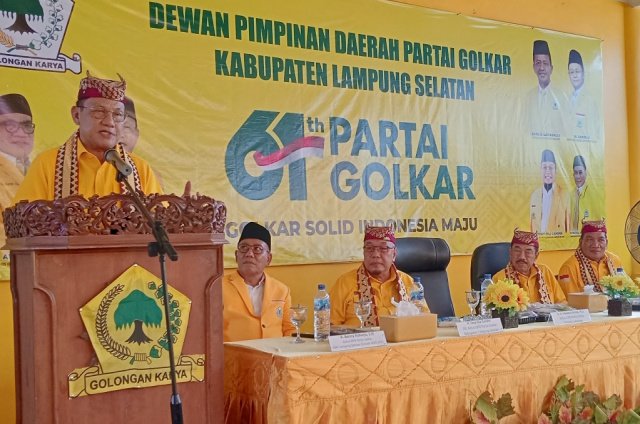 Dalam kesempatan ini, Hanan A Rozak memberi arahan kepada kader Golkar Lampung. Hanan memberi semangat kader Golkar Lampung Selatan. (W9-jm)