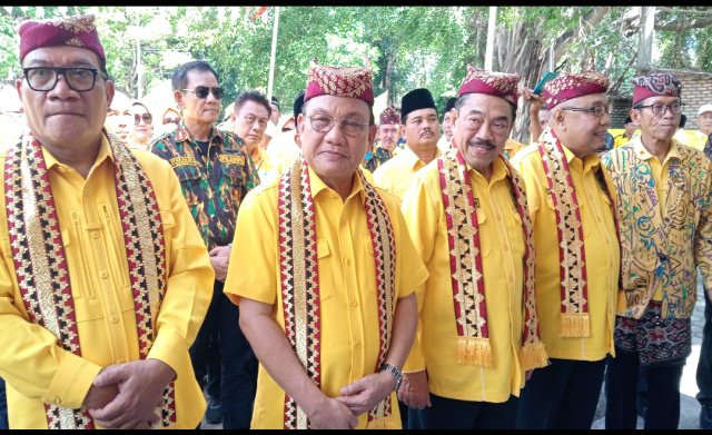 Hanan didanpingi Sekretaris Golkar Lampung H. Aprozi Alam, Ketua Harian Golkar Lampung H. Riza Mirhadi dan sejumlah pengurus Golkar Lampung disambut dengan arakan adat Lampung kemudian dikenakan Peci Tungkah Hanuang, peci adat lampung pesisir dan selendang Tapis.