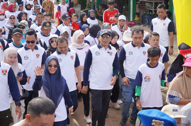 Gubetnur Lampung Rahmat Mirzani Djausal jalan sehat bersama masyarakat Mesuji. (foto : ist)