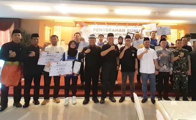 Bonus tersebut, diberikan kepada lima atlet silat Lampung dengan rincian dua atlet meraih medali emas, dua atlet meraih medali perak, dan satu atlet meraih medali perunggu.