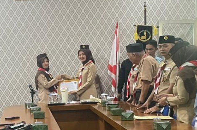 Bandarlampung, Warta9.comKetua Kwarda Lampung Jihan Nurlela memberikan penghargaan kepada Kwarcab, Kwarran, Gudep dan sejumlah donatur Bumbung Kemanusiaan untuk Banjir Sumatera pada Jum’at (9/1/2026) pagi di ruang rapat Kwarda Lampung, Jl. Pramuka, Bandarlampung.