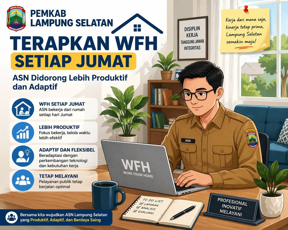 Pelaksana tugas (Plt) Kepala Dinas Komunikasi dan Informatika (Kominfo) Lampung Selatan, Hendry Kurniawan, menegaskan bahwa penerapan WFH tidak akan mengganggu pelayanan publik. Pemkab memastikan layanan kepada masyarakat tetap berjalan optimal.