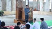 Samsudin, saat memberi sambutan pada acara walimatussafar di Masjid Al Hijrah. (foto Baca selengkapnya