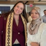 Sekar Kinasih Mahasiswi Universitas Teknokrat Peserta Pertukaran Pelajar Internasional Serahkan Selendang Tapis ke Julie Jimenez